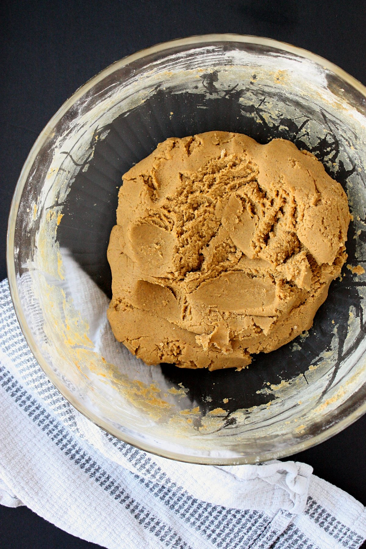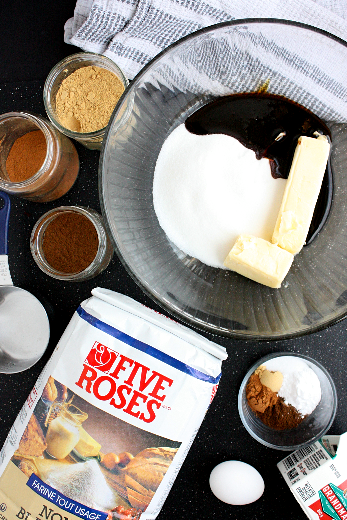 A super simple recipe really—cream sugar, butter, and molasses, mix in an egg, then add in salt, baking soda, spices and flour.