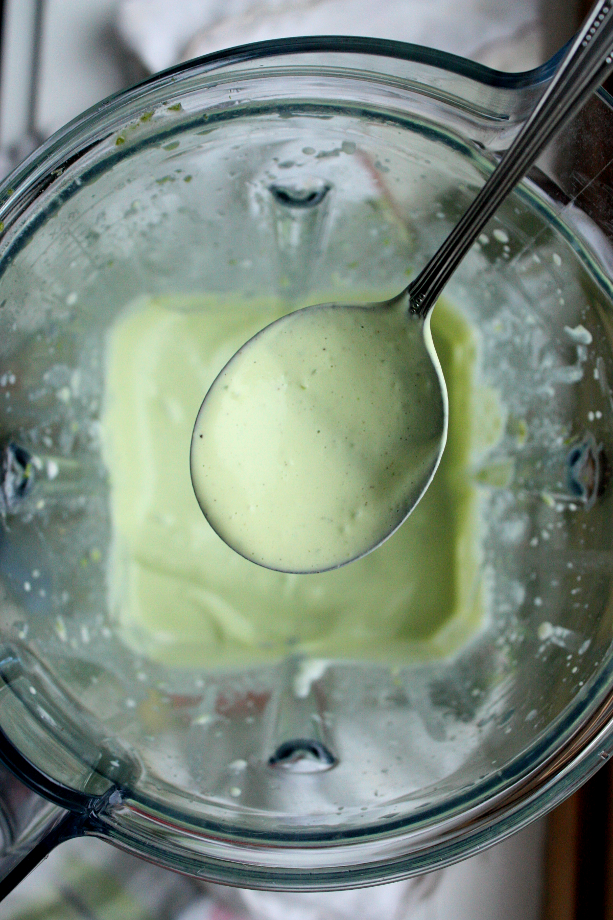 Add water to reach that perfect easy-to-pour-but-still-very-creamy consistency. Start by adding 1/8 of a cup. You won’t need more than a 1/4 cup. How much water is needed also depends on the juiciness of your limes and if you added extra.
